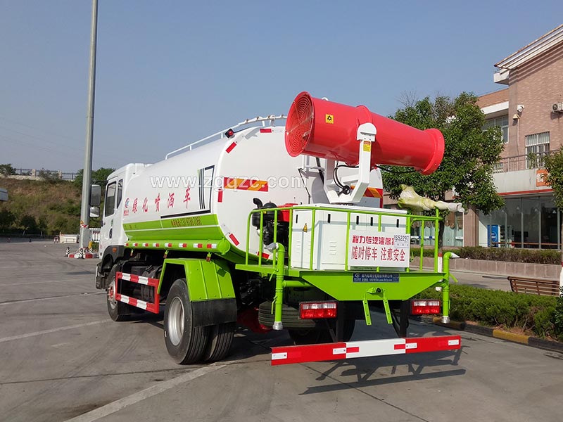 這兩臺(tái)東風(fēng)D9多功能霧炮灑水車(chē)同為湖北程力制造,因作業(yè)環(huán)境不同,配置有些許不同,送往北京的這臺(tái)是玉柴160發(fā)動(dòng)機(jī),國(guó)五標(biāo)準(zhǔn),12方罐體,9.00鋼絲胎,尾部安裝全自動(dòng)40柴油霧炮機(jī),水平射程40米,配32噴嘴,帶遙控。