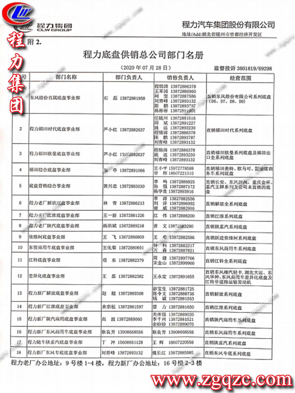 歡迎廣用戶來我廠實(shí)地考察,如需了解更多程力專用汽車股份有限公司車輛,詳情請(qǐng)登陸湖北程力專用汽車有限公司官方銷售網(wǎng)站:http://www.qianfujinfu.cn,或拔打全國(guó)24小時(shí)免費(fèi)服務(wù)熱線:400-019-1588/400-689-1599。若購(gòu)買的車輛有其它問題,可撥打湖北程力集團(tuán)投訴電話:0722-3592666(馬旭東主管)