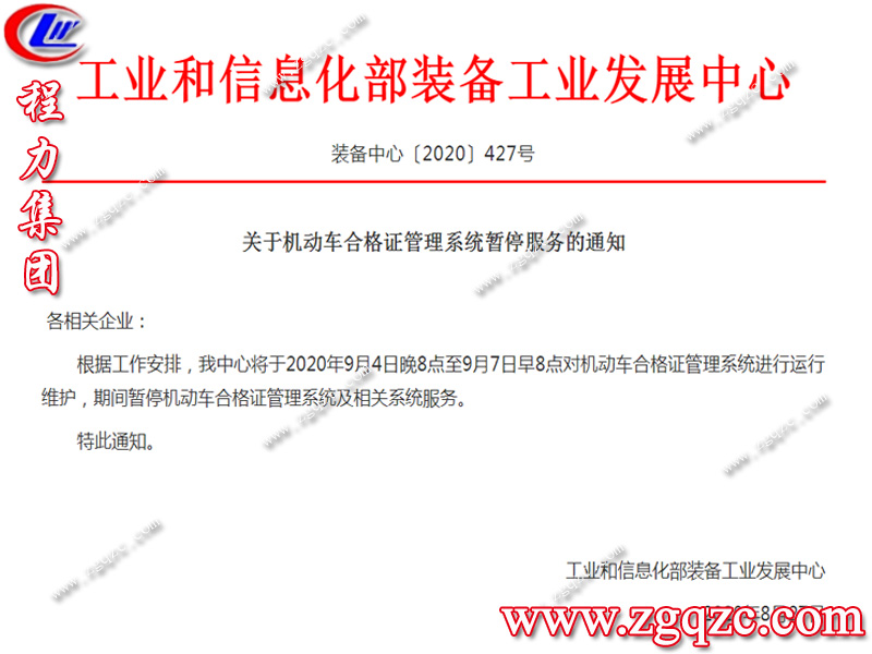 重要通知,關(guān)于機動車合格證管理系統(tǒng)暫停服務(wù)的通知