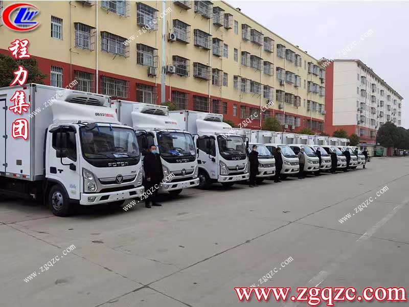 2021牛氣沖天,2020年剛剛過去,湖北程力集團(tuán)銷售部接到了廣西老客戶張總的電話,要訂購一批冷藏車,因?yàn)榭斓侥甑琢?,各地的疫情也很緊張,張總說要趕緊生產(chǎn)然后送往廣西,經(jīng)過跟張總的溝通最終定下7臺藍(lán)牌福田祥菱M1冷藏車,和3臺黃牌奧鈴速運(yùn)冷藏車。