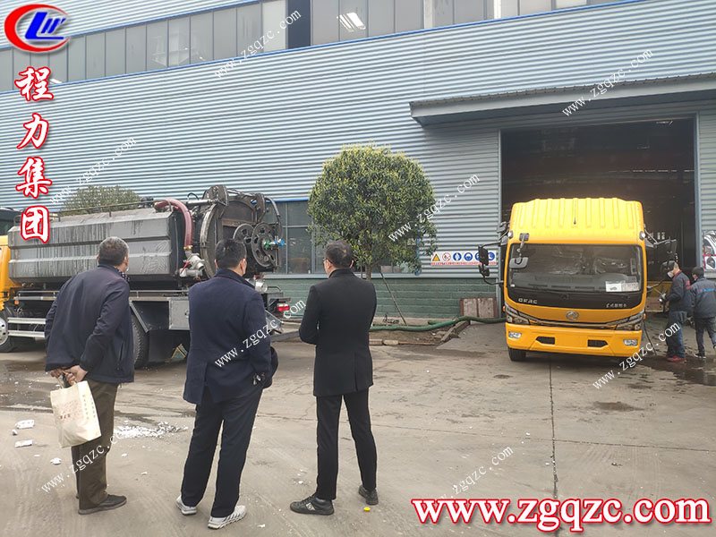 上圖為程力集團(tuán)小編帶客戶去車間看清洗吸污車